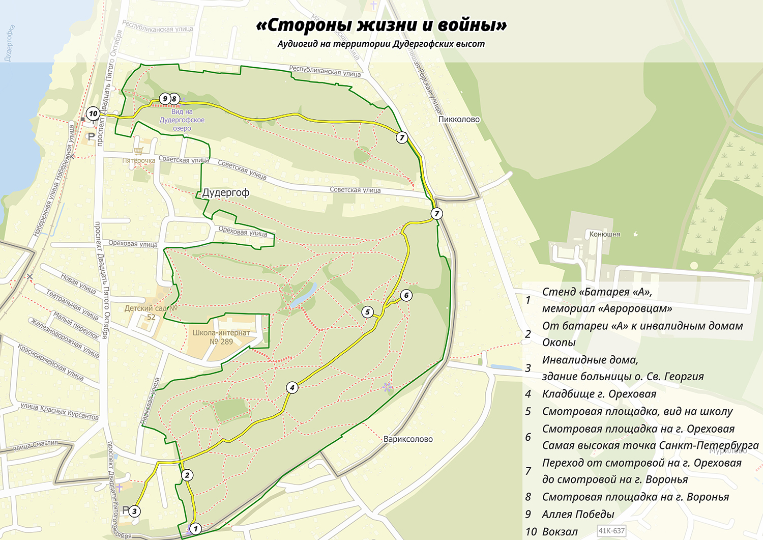 Чтобы прослушать аудиогид, пройдите по ссылке. Дополнительно вы можете скачать карту и трек маршрута в формате KML.