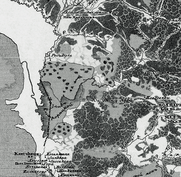После получения Финляндией независимости в 1917 г. граница по р. Сестре стала государственной, и в этом качестве просуществовала до 1940 г. Жизнь в деревнях по обе стороны границы резко изменилась. На советской стороне с конца 1920-х гг. в несколько этапов проводились выселения преобладающего здесь ингерманландско-финского населения; опустевшие дома при этом уничтожались. На территории Сестрорецкой низины такая судьба постигла деревню Редуголь, от которой осталось одно название. На освободившейся территории началось строительство Карельского укрепрайона (КаУР), состоящего из бетонных укреплений, противотанковых надолбов и рвов. Для обеспечения обороны практически весь лес вокруг вырубали. На картах 1930-х гг. видно, что на советской стороне были вырублены почти все леса к северу от Сестрорецкого болота и по островам на болоте, значительная часть лесов вдоль р. Сестры и по дюнам вдоль Финского залива.
